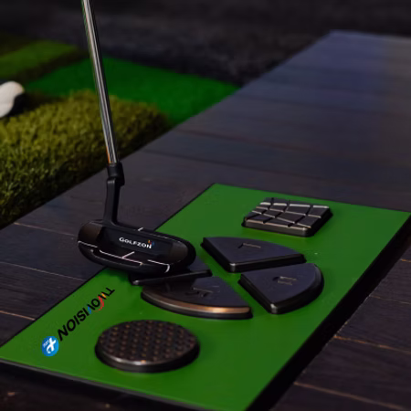 When you’re putting, use the stripes on the mat—they line up perfectly with the hole. For straight putts, putt straight down the stripes. If there’s break, watch the grid lines and moving lights. Faster lights mean a steeper slope and more break. Use this visual feedback to gauge your aim and adjust your line. Reading the grid accurately can make a huge difference in sinking more putts.